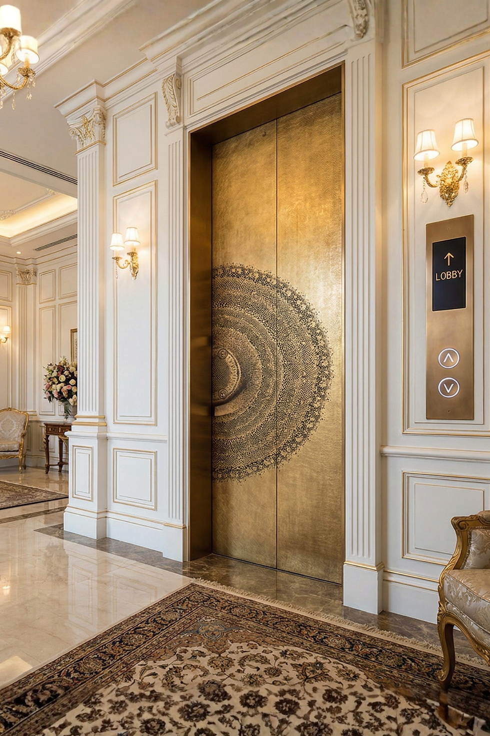 A floral relief unfolds across the Lotus Balance Lift Panel, its lotus forms expressed through controlled depth and proportion.