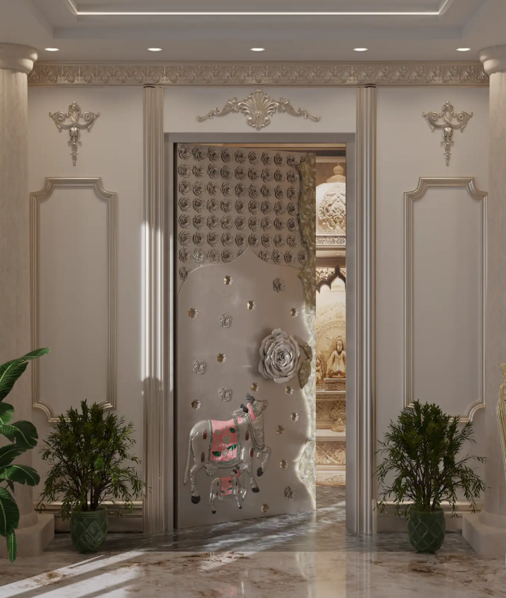 As for another door that boasts classical designs, the Lotus Door, with its brass foundation, complements a diverse and divine range of design.